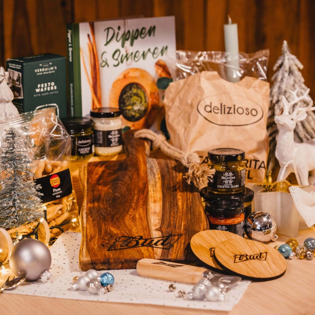 Een heerlijk kerstpakket met hoogwaardige delicatesse en gepersonaliseerde items! Wij personaliseren verschillende items in uw kerstpakket met uw logo of persoonlijke tekst. Dit jaar geeft u een uniek en tot in de puntjes verzorgd pakket!